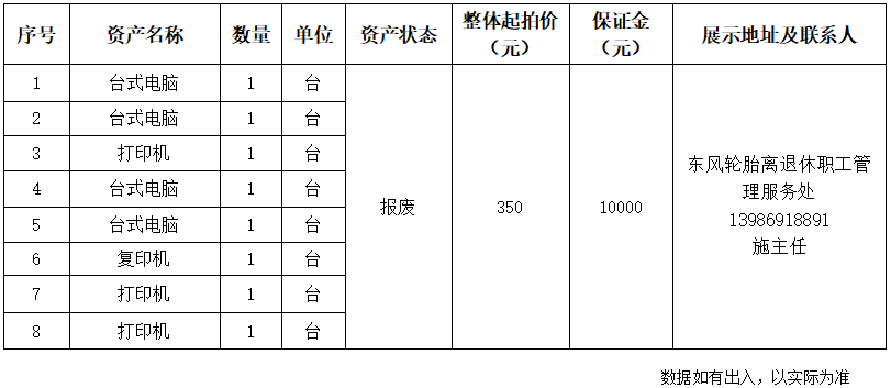 2.湖北省十堰市東風(fēng)輪胎離退休職工管理服務(wù)處報(bào)廢資產(chǎn):