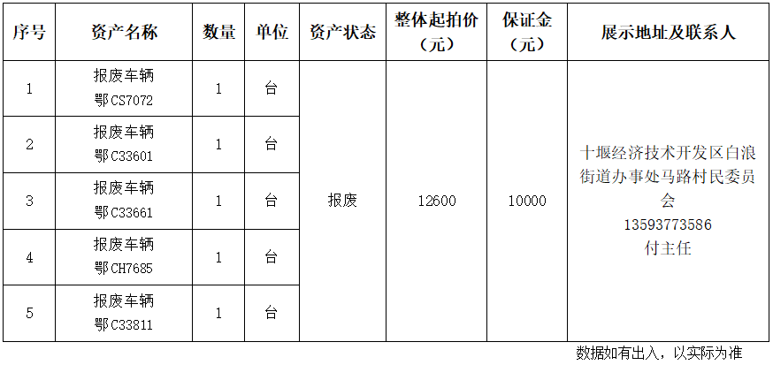 4.湖北省十堰經(jīng)濟(jì)技術(shù)開(kāi)發(fā)區(qū)白浪街道辦事處馬路村民委員會(huì)報(bào)廢車輛: