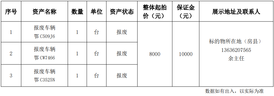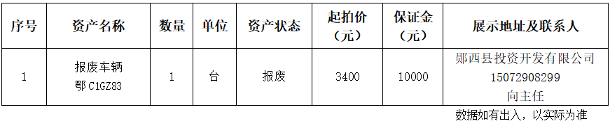 6.湖北省十堰市鄖西縣投資開(kāi)發(fā)有限公司報(bào)廢車輛: