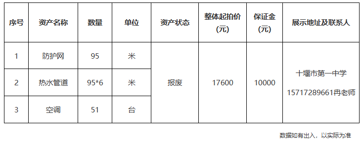 1.湖北省十堰市第一中學(xué)報(bào)廢資產(chǎn):